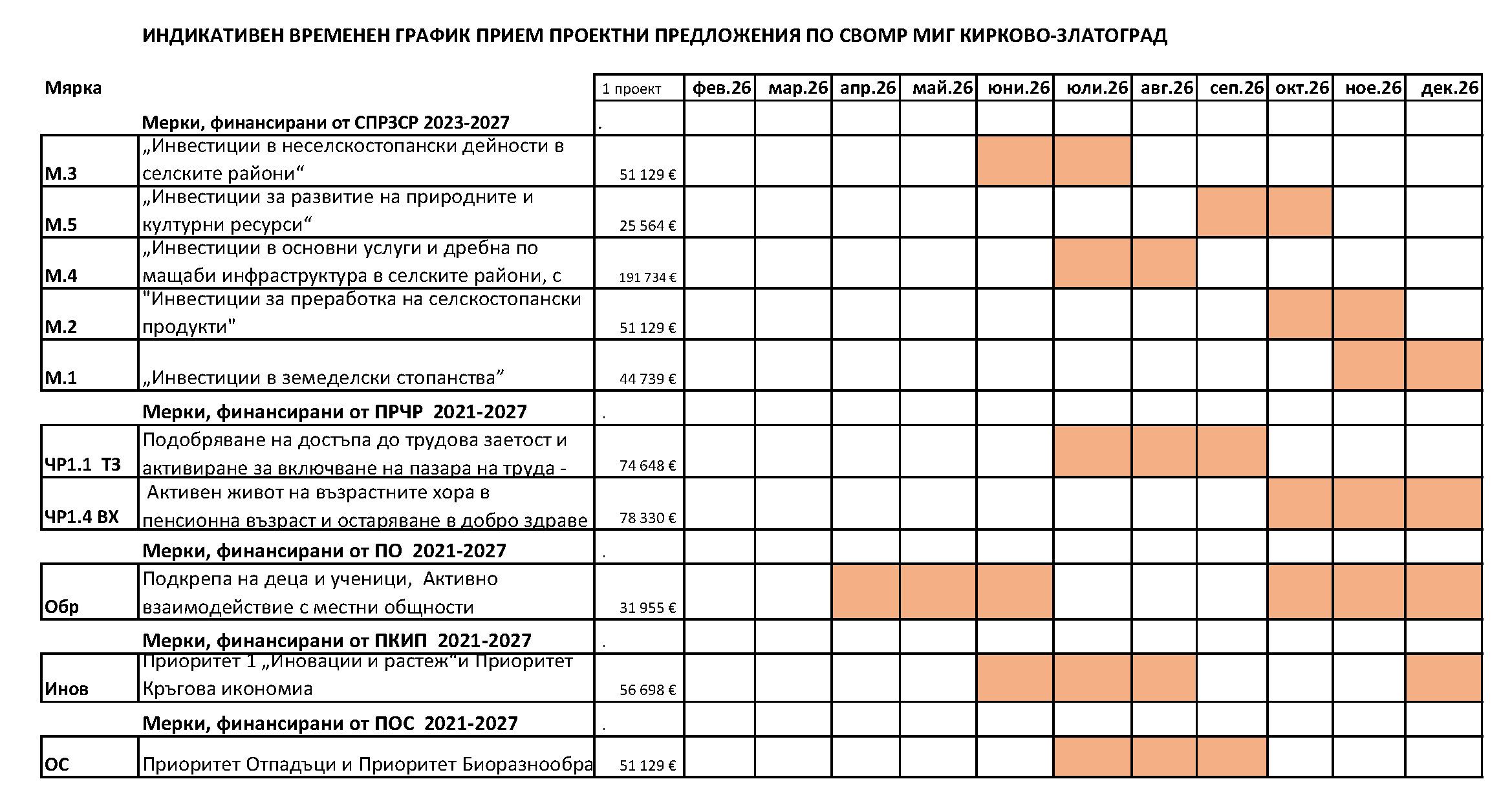 Индикативен годишен график 2026